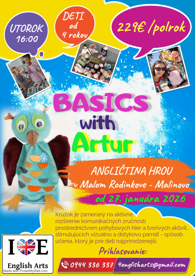 Deti v skupinke krúžkom sprevádza priateľská maňuška -sovička Artur - ktorá im pomáha osmeliť sa, aby bol ich prvý kontakt s cudzím jazykom pozitívnym zážitkom. Hodiny prebiehajú prostredníctvom pohybovo - tvorivých aktivít.