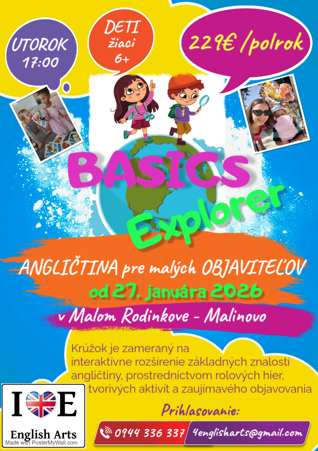 Veselé hodiny ANGLICKÉHO JAZYKA PRE DETI od 4 rokov. Krúžok je zameraný na aktívne rozšírenie komunikačných zručností prostredníctvom pohybových hier a tvorivých aktivít, stimulujúcich vizuálnu a dotykovú pamäť - spôsob učenia, ktorý je pre deti najprirodzenejší.