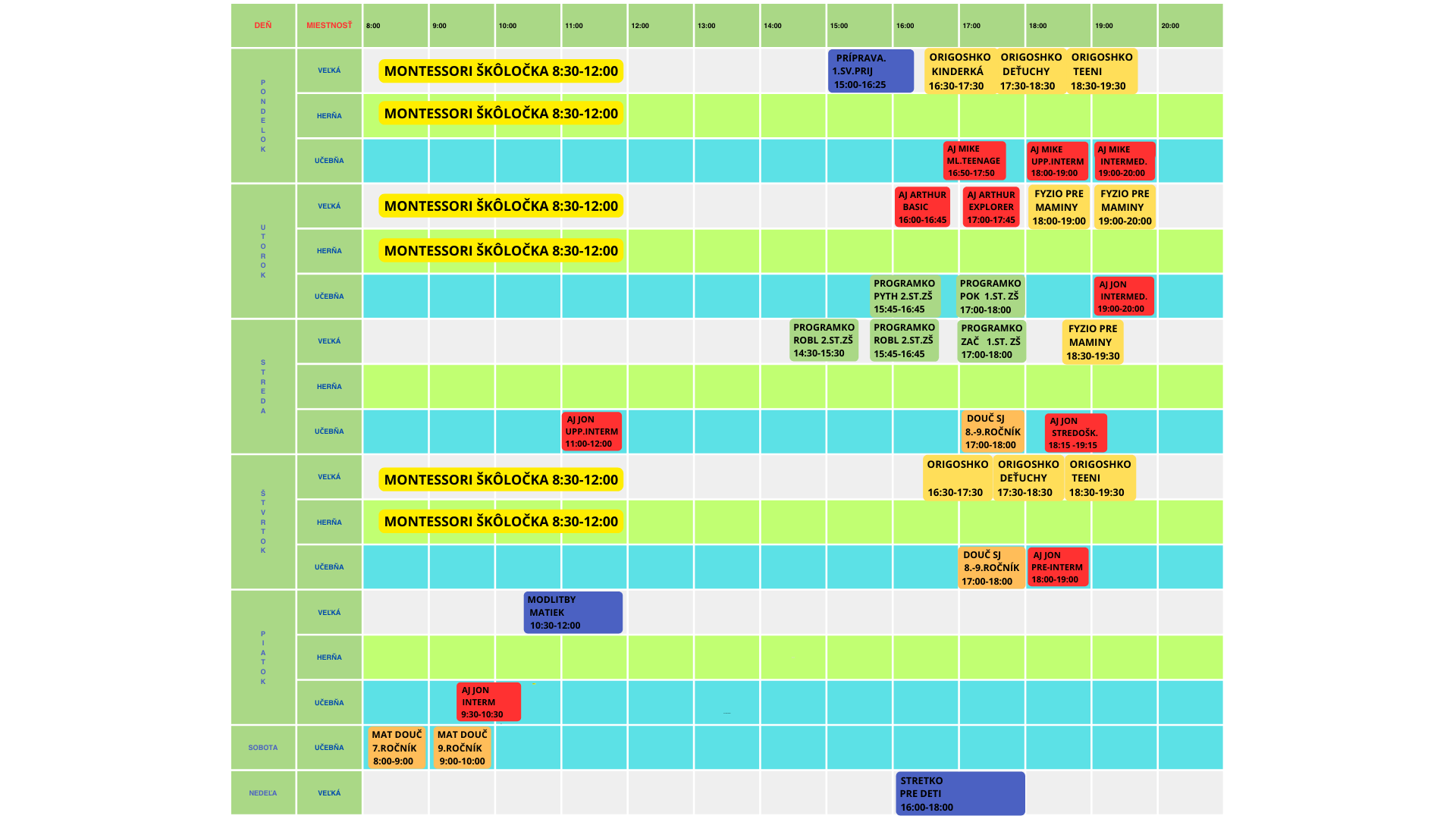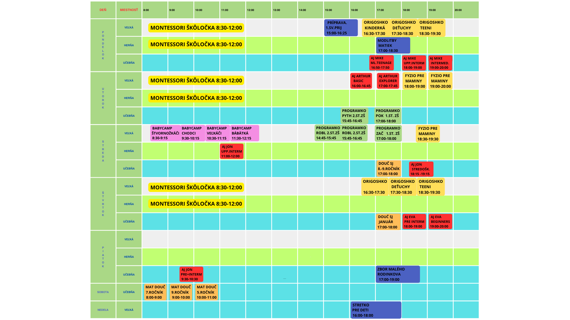 V ponuke máme okrem pravidelných aktivít aj nepravidelné aktivity.